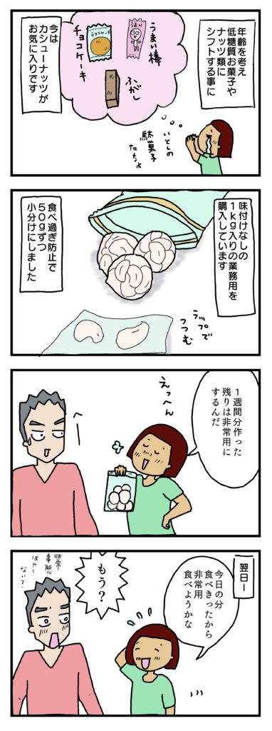 以前から好きで購入はしていたので、糖と油が欲しくなった時の救世主として常備することにしました。