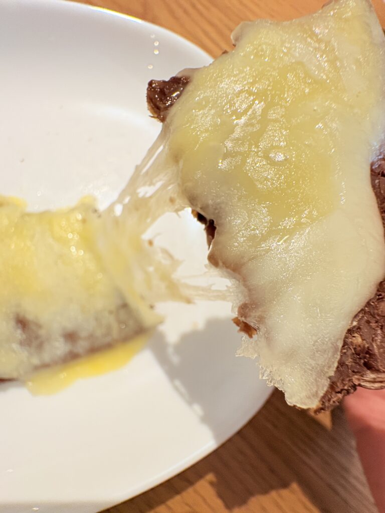 ミルキーなチーズの香りと温められてもちもちになったライ麦。
